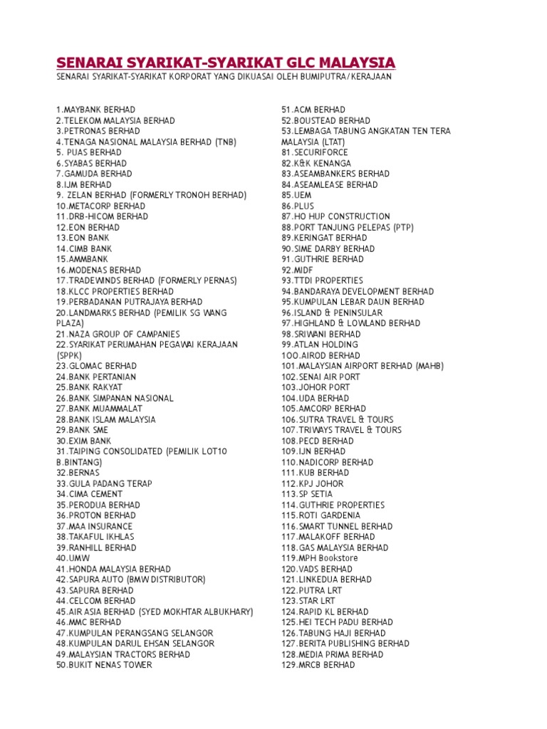 Senarai Glc Malaysia Pdf Companies Malaysia